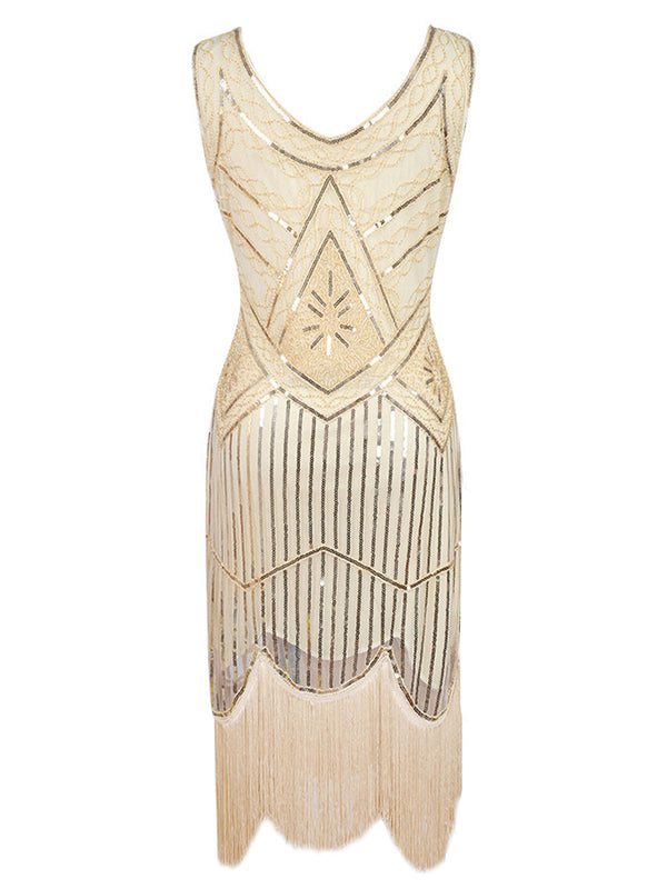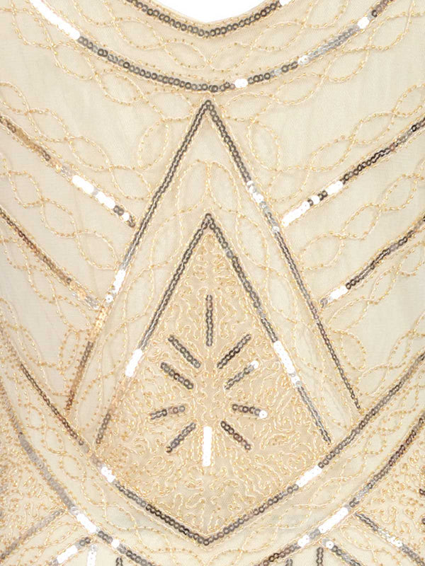 Let us know when you’ve popped your eyes back in! It’s all about the details with this stunning 1920s sequin gatsby dress from Retro Stage. Gleaming from every angle, the fitted form drops to a straight hemline that sways with a long apricot fringe. Never stop dancing, darling.