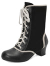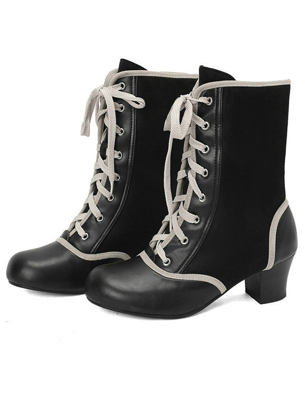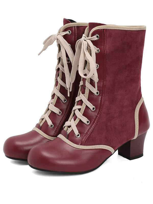 Vintage Lace-Up Faux Suede & Leather Mid Calf Boots | Retro Stage