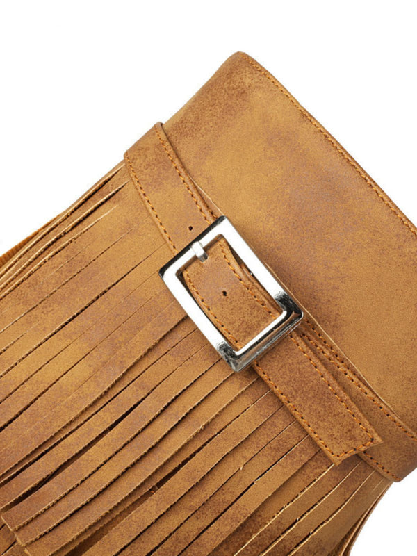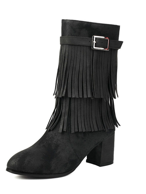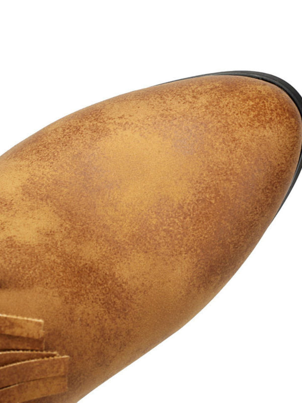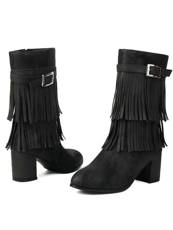 Vintage Solid Fringe Suede Chunky High Heel Boots
