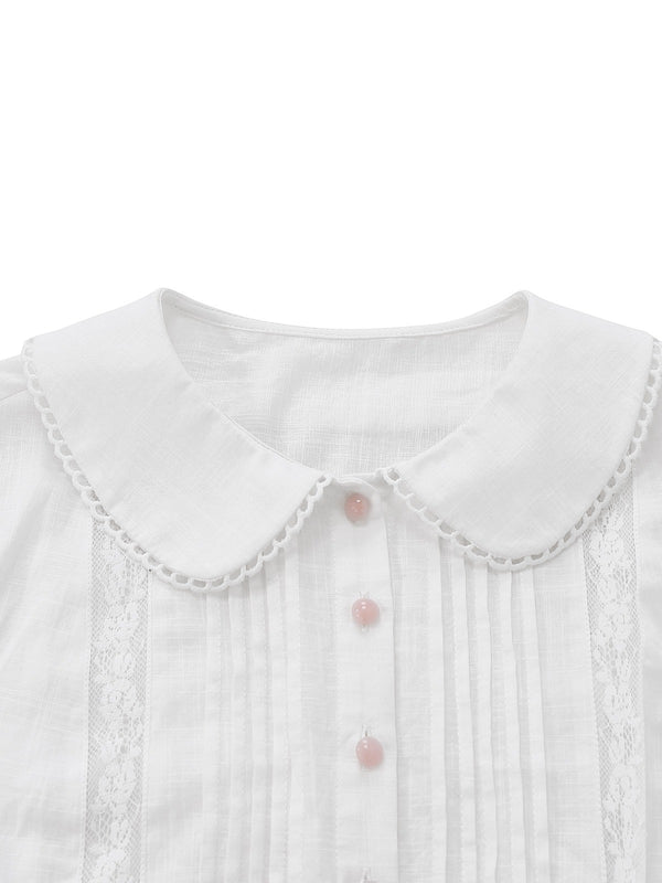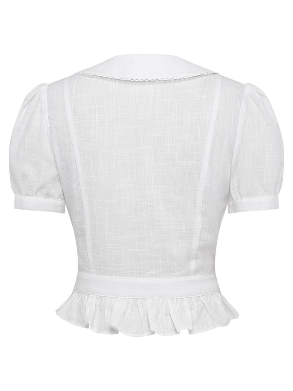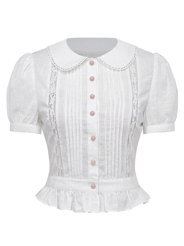 [Pre-Sale] White 1950s Cotton Peter Pan Collar Tucked Lace Blouse | Retro Stage