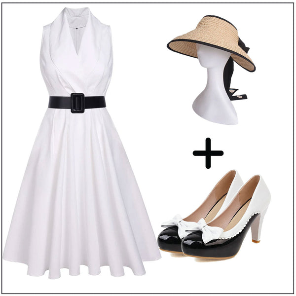 Something wicked this way comes, darlings! The high waistline and matching sash center your hourglass as the swing skirt flows over your hips with dainty darted pleats for fabulous embellishment. Capture the chic essence of Marilyn Monroe's supreme retro style, and channel your inner vintage vixen with RetroStage's gorgeous Monroe dress.