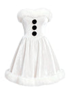 [Pre-Sale] White 1960s Snowman Velvet Plush Trim Strapless Dress | Retro Stage