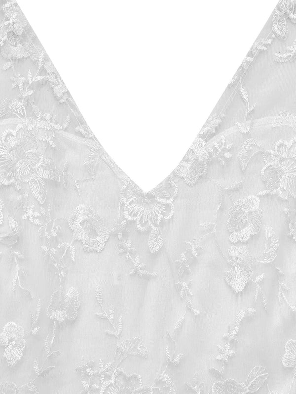 White 1970s Mesh Floral Embroidered Jumpsuit